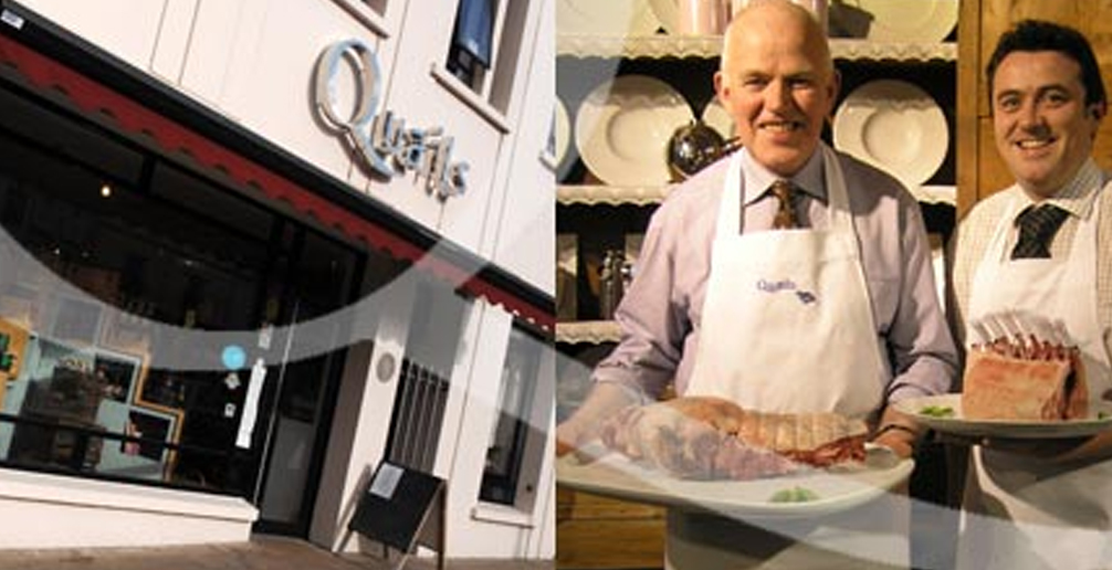 Four Generations of the Quail family have been selling food to the good people of Banbridge and beyond since 1898. The shop started out as a small butcher’s and has grown into a modern food hall and delicatessen. Staff often go on courses to improve their skills, including the prestigious Ballymaloe Cookery School. The shop may be state of the art, but they’re staying true to their traditional values of providing the best quality meat from their own farm and a range of foods from other high quality producers. Their packs of sirloin, rib-eye and fillet steak and boneless rib roasts are dry-aged and come from their Limousin herd. Lots of their produce has won Great Taste Awards like their Rib-eye and Beef and Caramelised Onion sausages. The deli side of the business was originally started by Brydlyn Quail. She was a catering lecturer at the local college. She noticed that customers were looking for easy to prepare meals or foods for entertaining at home. She and her husband Jim added honey-baked ham, pies, quiches and many salads to the range of products. Make a visit our shop online and you’ll be so glad you did. Opening hours 8am-5.30pm Mon-Sat