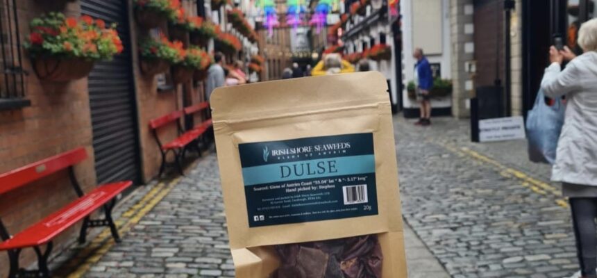 The folk at Irish Shore Seaweeds are fourth- generation seaweed harvesters who gather dulse from the Glens of Antrim shores. It is harvested from the sea and then laid out to dry. It is then packaged in resealable Kraft bags and sent out to customers and stockists.
