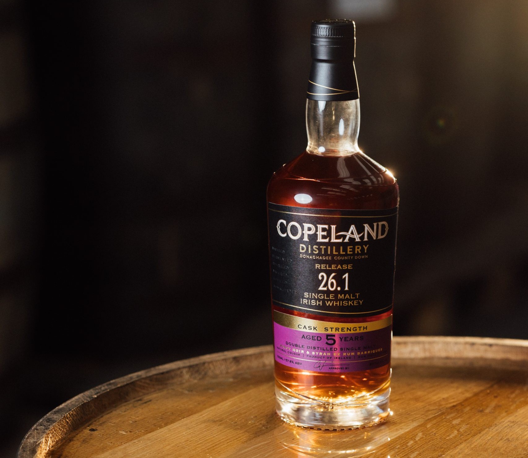 26.1 is a 5-year-old double-distilled Single malt, matured in a combination of ex-Pinot Noir and ex- Syrah (Shiraz) barriques that previously held Copeland Overproof Rum. 100 percent mashed, fermented, distilled and matured on the Ards Peninsula, and shaped by the coastal influence of Donaghadee, where the distillery is based, the new single malt reflects both place and innovation.